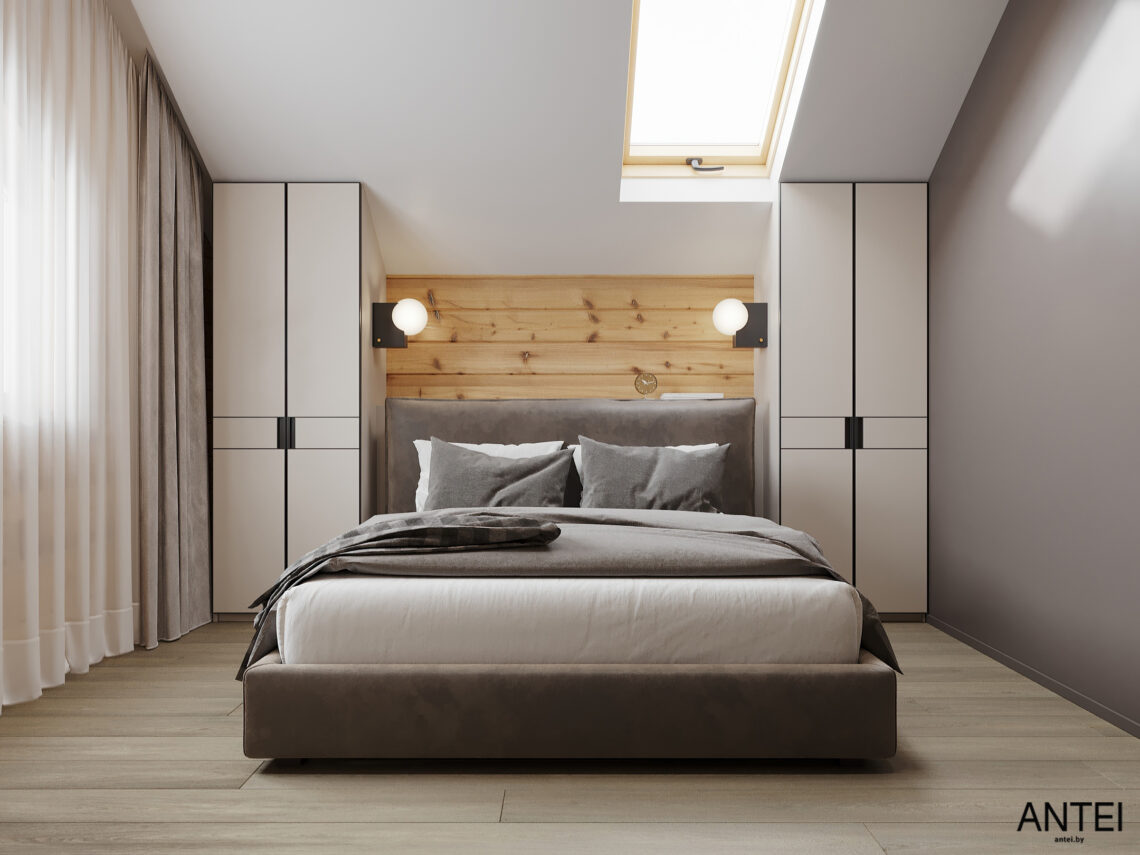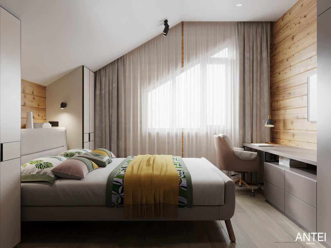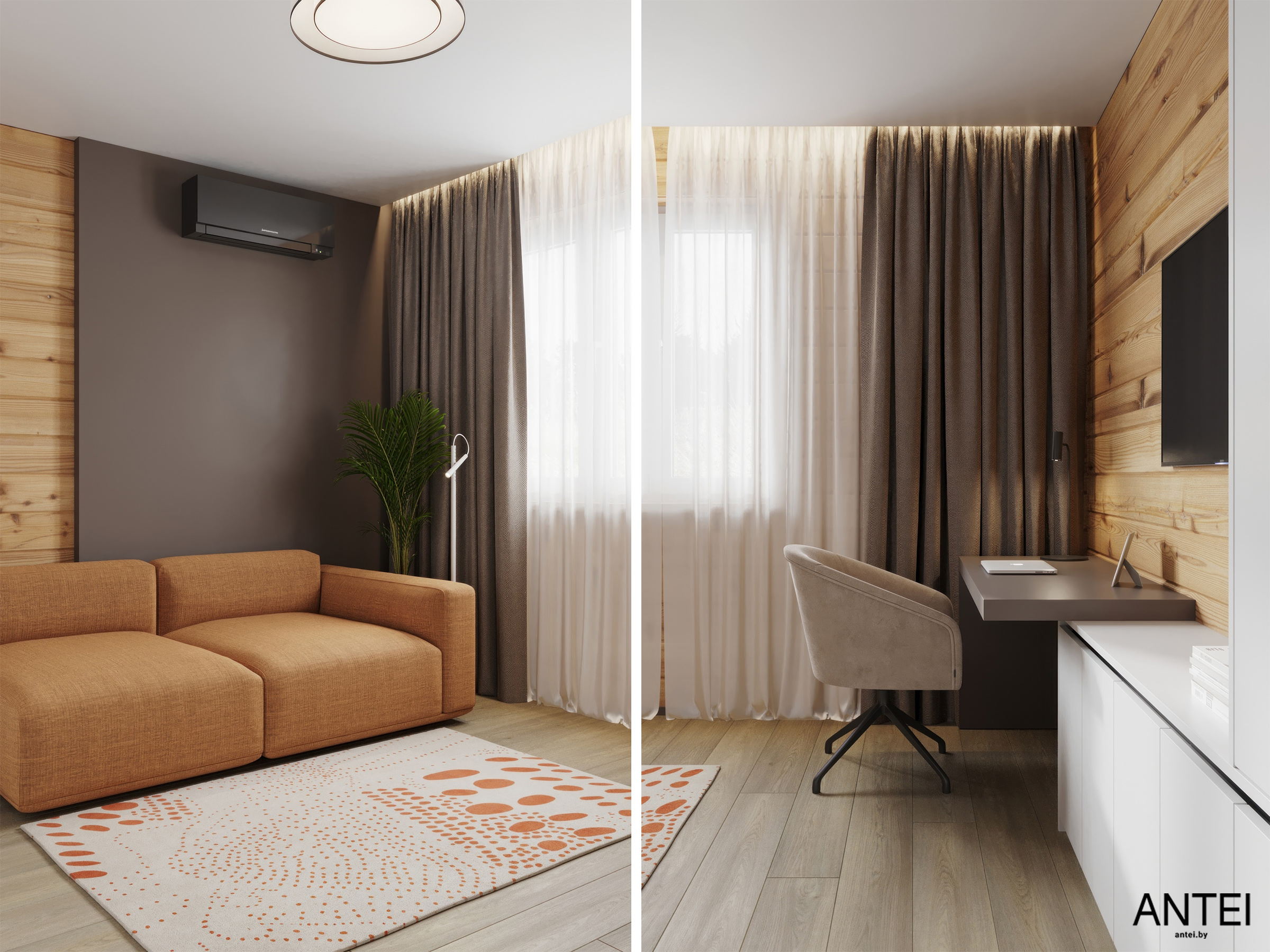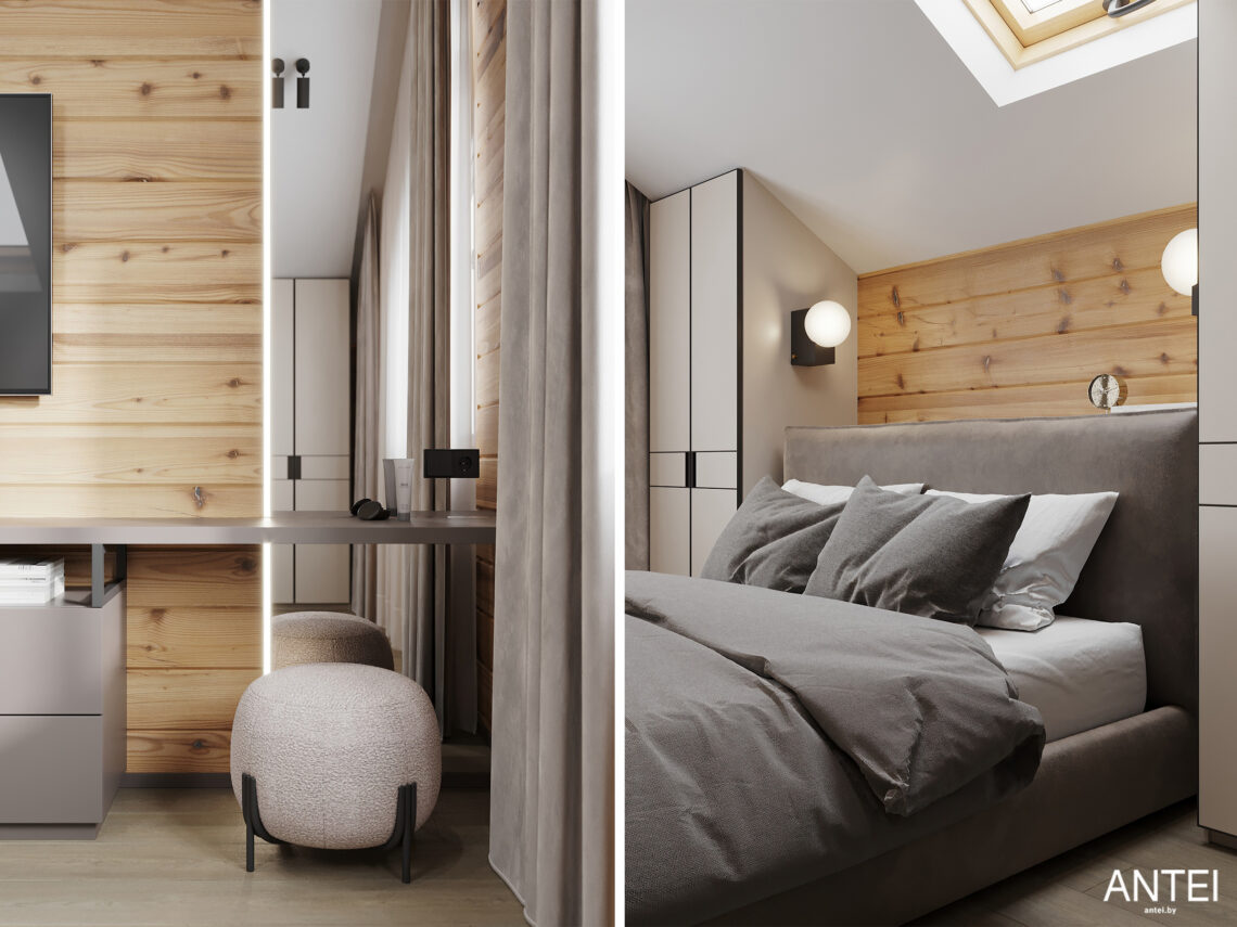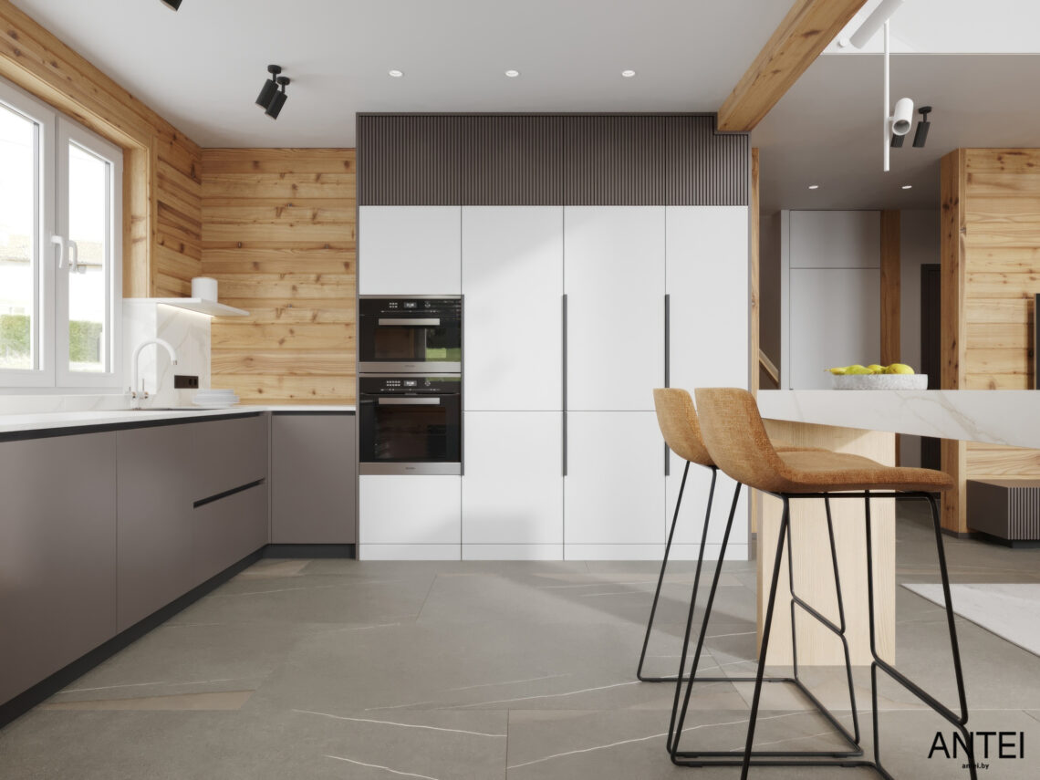 Интерьер дома из бруса в Московской областиСовременный дизайн интерьера дома из бруса со вторым светом, площадью 195,0 кв.м. в Московской области