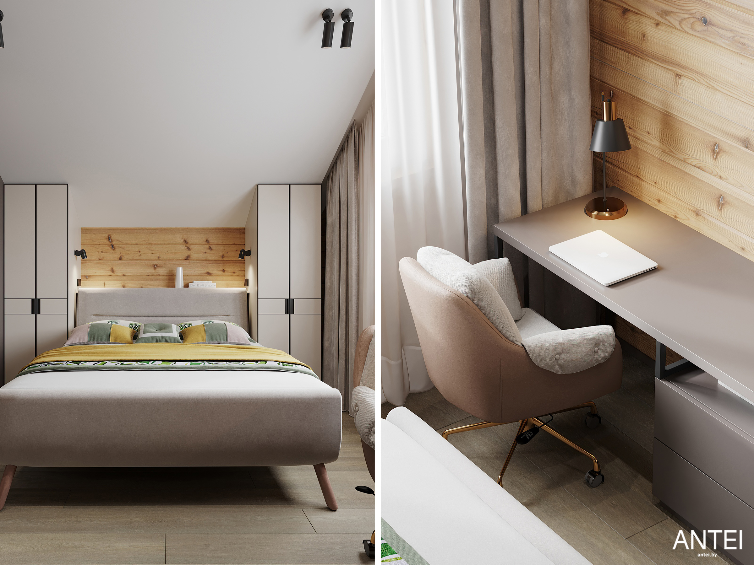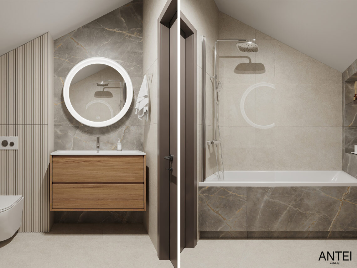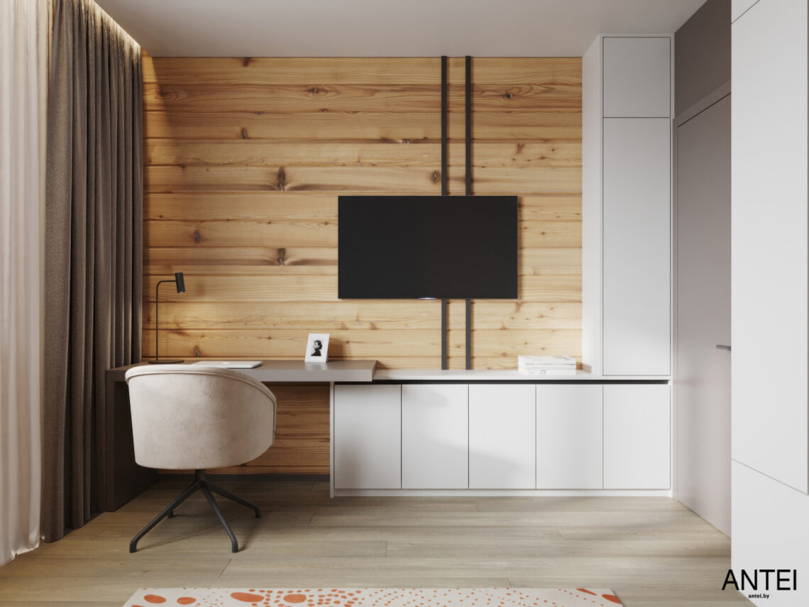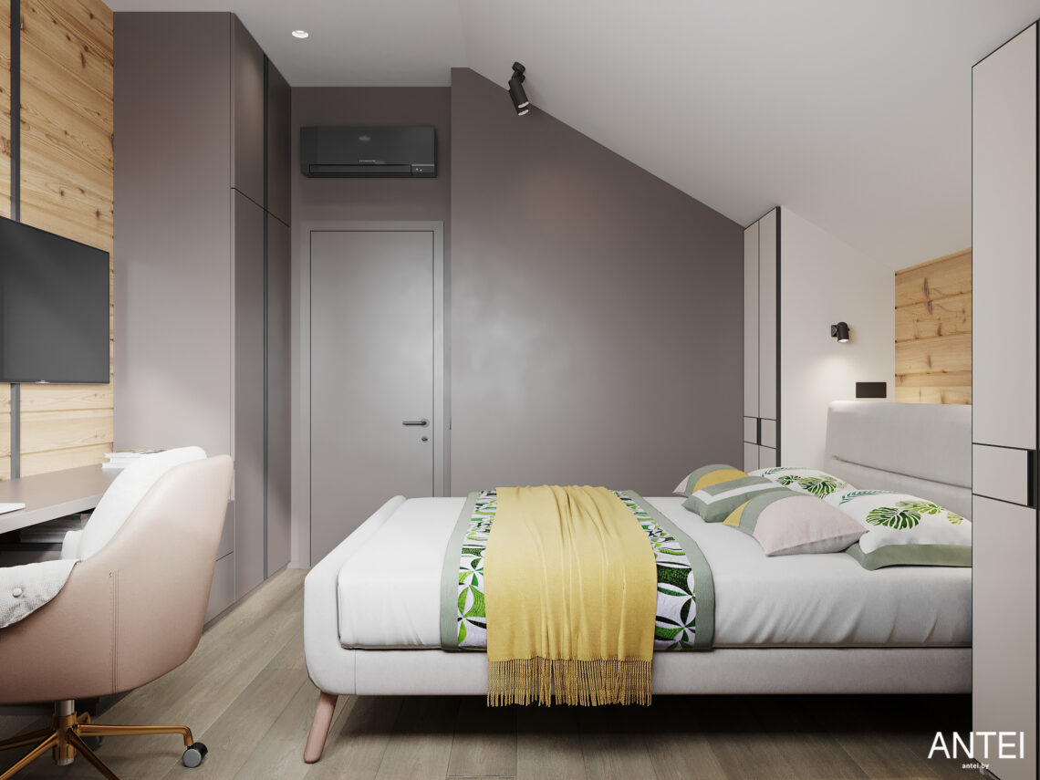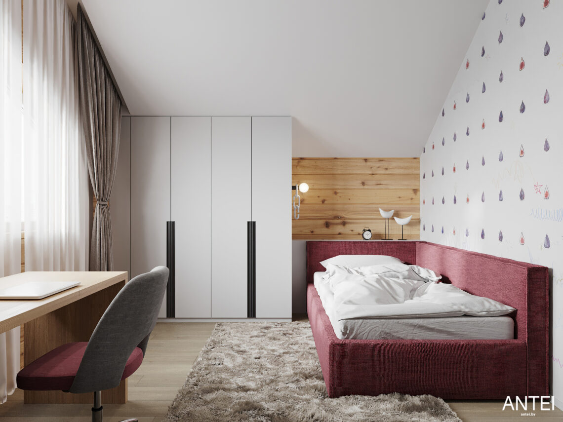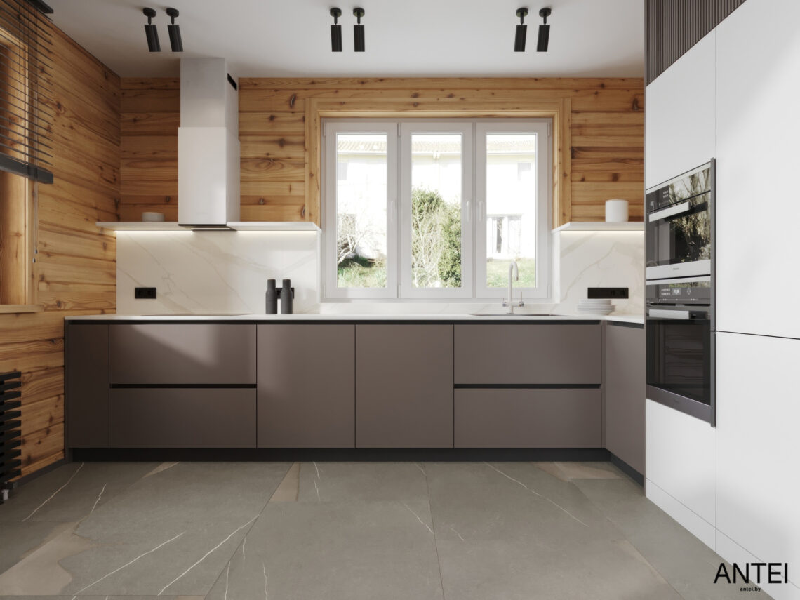Интерьер дома из бруса в Московской областиСовременный дизайн интерьера дома из бруса со вторым светом, площадью 195,0 кв.м. в Московской области