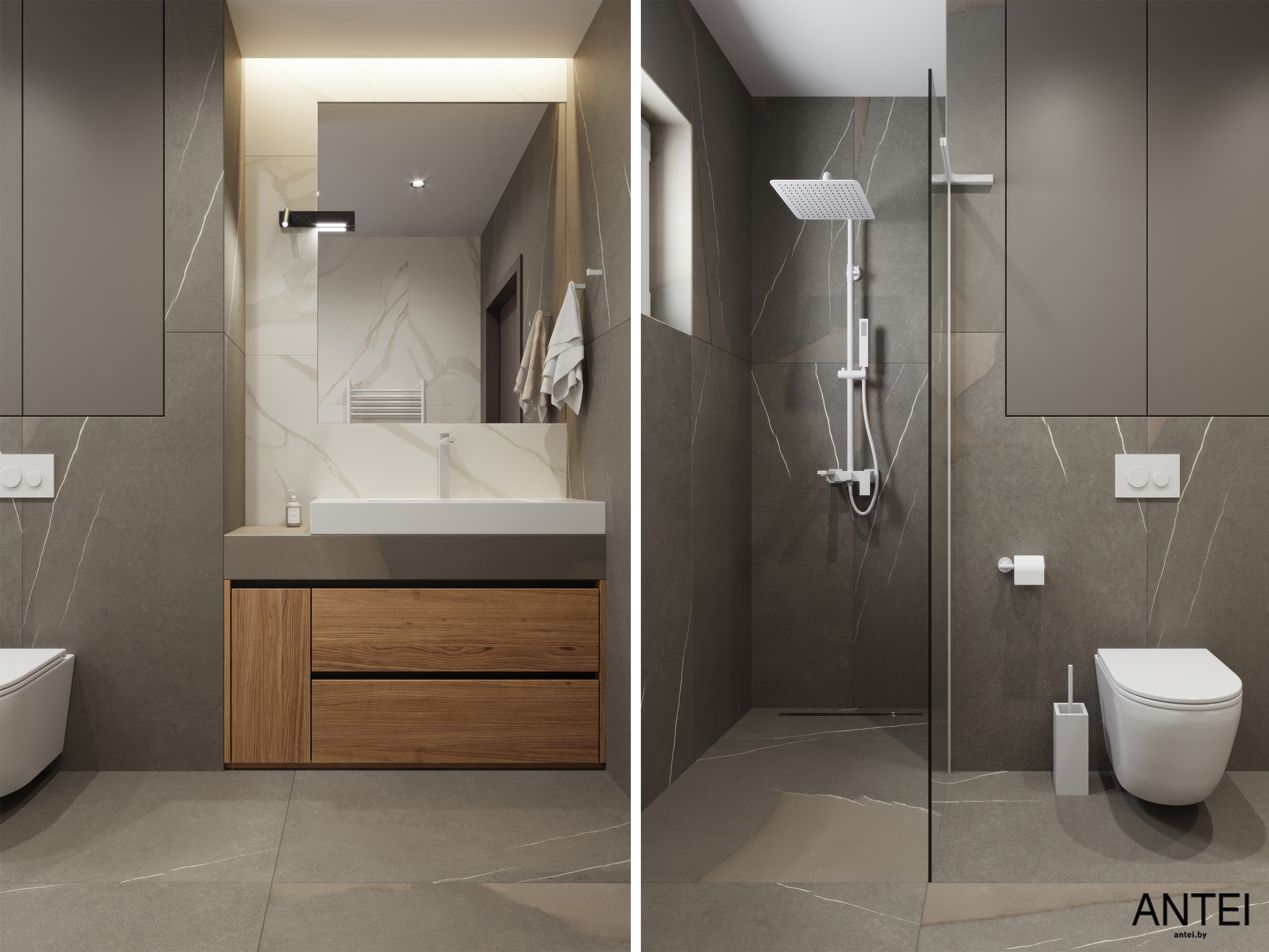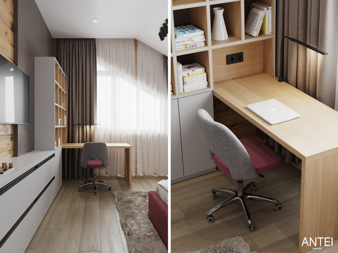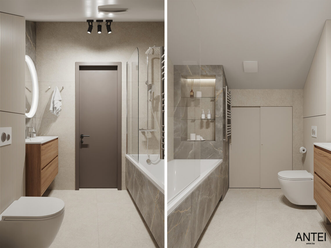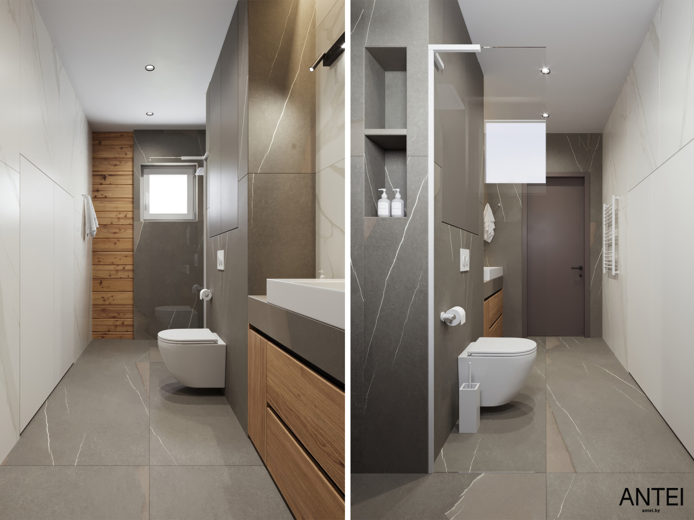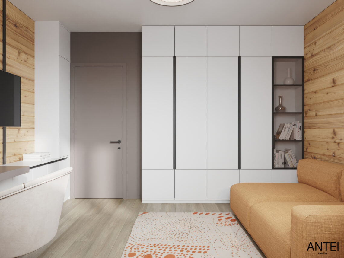 Интерьер дома из бруса в Московской областиСовременный дизайн интерьера дома из бруса со вторым светом, площадью 195,0 кв.м. в Московской области